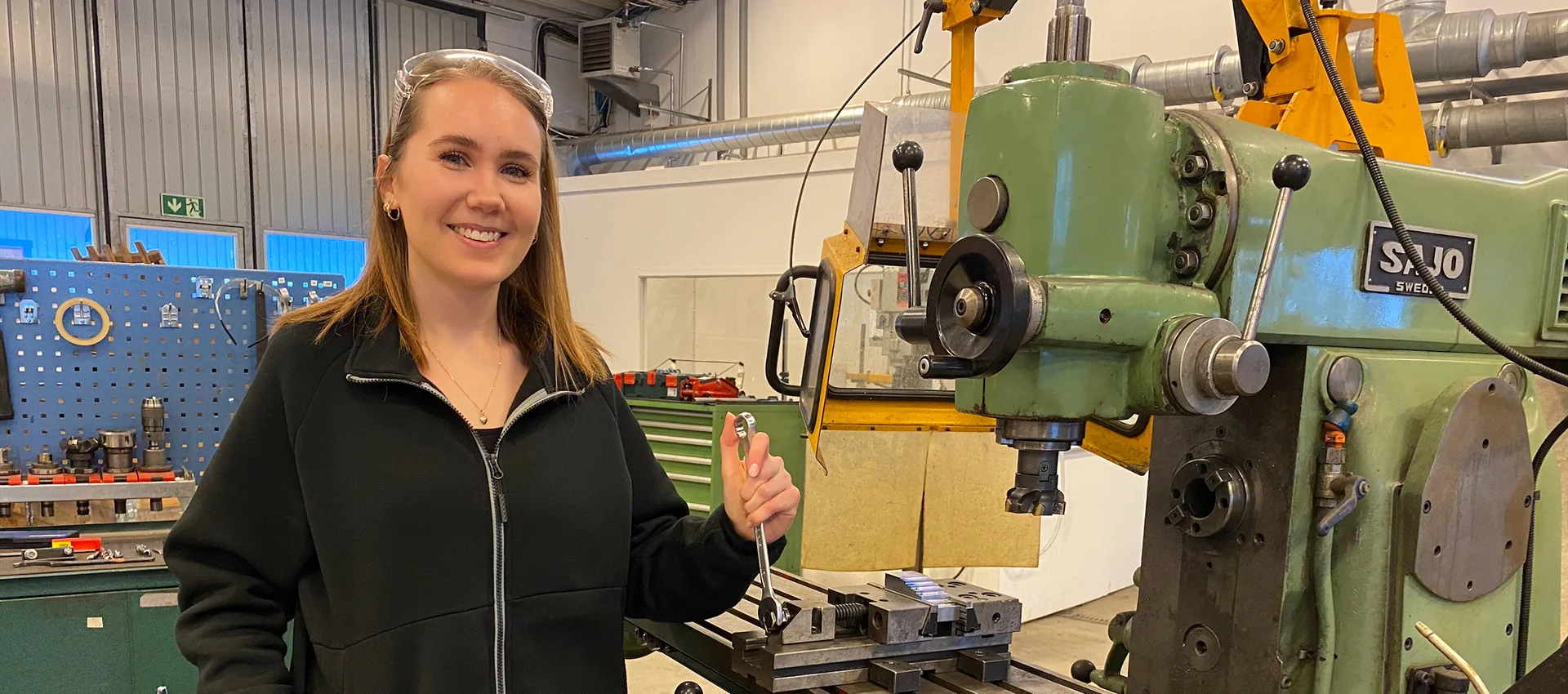 Programmet Underhållstekniker är en platsbunden utbildning som utgår från Linköping men två dagar i veckan är de i Vimmerby för de praktiska momenten. ”I Vimmerby läser vi just nu mekanik där vi får lära oss att bland annat svarva, svetsa och fräsa, vilket är jättekul! Vi, i klassen, samåker till Vimmerby så det blir ett bra tillfälle att verkligen lära känna varandra och komma nära. När vi kört den praktiska delen så fortsätter vi att läsa i Linköping” berättar Alexandra.