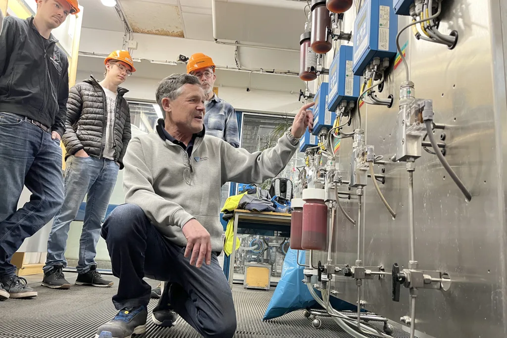 Det är eftermiddag på laboratoriedagen på Tekniska Verken i Linköping. Studerande på programmet tittar nyfiket på när Anders Fredriksson, process- och instrumenttekniker, mäter salthalter i matarvatten. “Matarvattnet på ett värmeverk är som kroppens blod och här är det minst lika viktigt att hålla i trim. Håller inte matarvattnet bra kvalitet kan det i värsta fall leda till haveri i en av turbinerna,” förklarar utbildningskonsulten Jan Lundgren som är på plats.