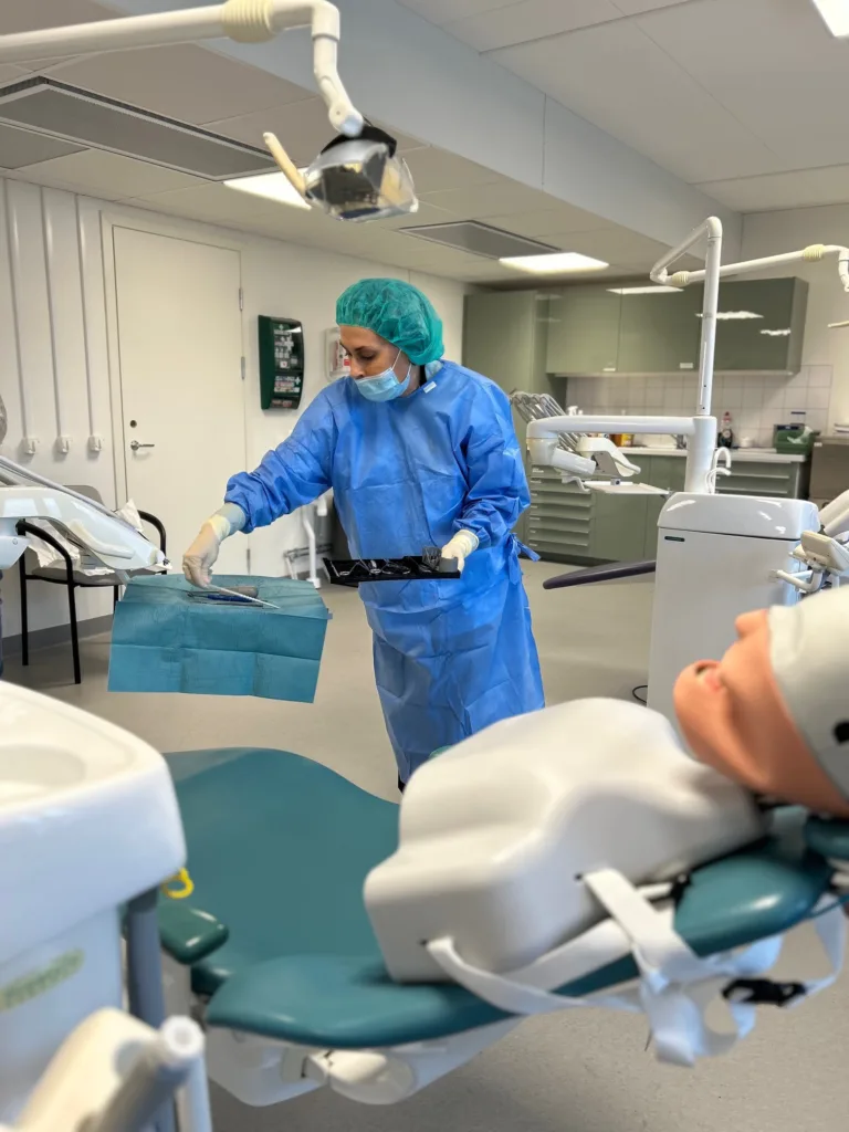 ”Jag älskar att yrket är så varierande och att jag får arbeta nära både patienter och ett professionellt team. Det känns meningsfullt att få bidra till människors hälsa, särskilt i en miljö som på operationsavdelningen där det ofta handlar om mer avancerad tandvård”, berättar hon.