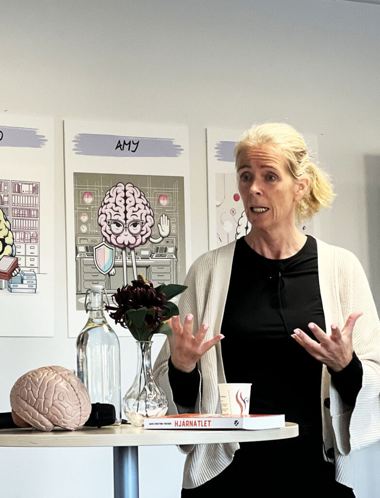 Maria berättade om hjärnans inneboende personligheter och hur du är ansvarig för arbetsmiljön i hjärnans kontrollrum. Här delade Maria med sig av hur du behöver arbeta för att fungera som en riktig hjärnatlet. ”Amy [red.ant. vår amygdalas] är vår riskanalytiker, men om vi låter stressen ta över kommer Amy förvandlas till en konspirationsteoretiker och det vill vi inte,” skämtade Maria.