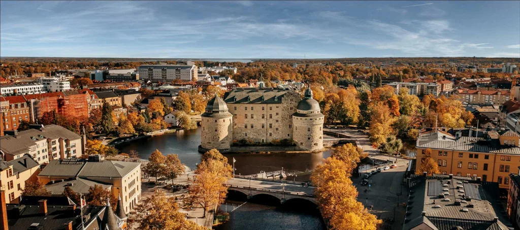 Örebro är en stad i Närke, centralt belägen i Sverige, känd för sitt historiska slott, sitt strategiska läge och sin närhet till både natur och vatten. Du tar dig hit enkelt med tåg, buss, bil eller via flyg till närliggande flygplatser. I stadens centrum rinner Svartån förbi det välkända Örebro slott, som är en av stadens främsta sevärdheter och vittnar om dess långa historia. För den som gillar ett aktivt liv finns goda möjligheter med parker, motionsspår och närhet till Hjälmaren, som erbjuder bad, båtliv och naturupplevelser. Stadens kulturutbud, med friluftsmuseet Wadköping, evenemang och ett levande stadsliv, bidrar till en trivsam atmosfär. Med ett brett arbetsliv och goda kommunikationer är Örebro en attraktiv stad att bo, studera och arbeta i.